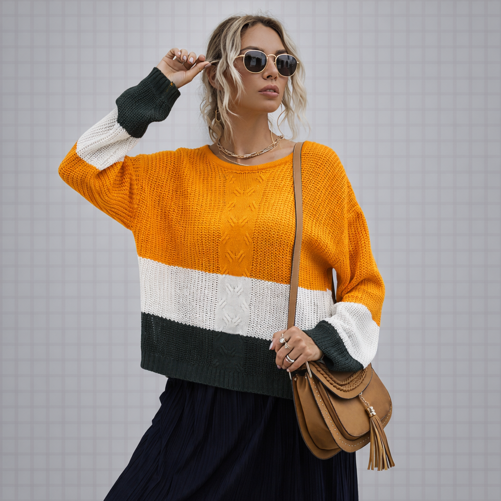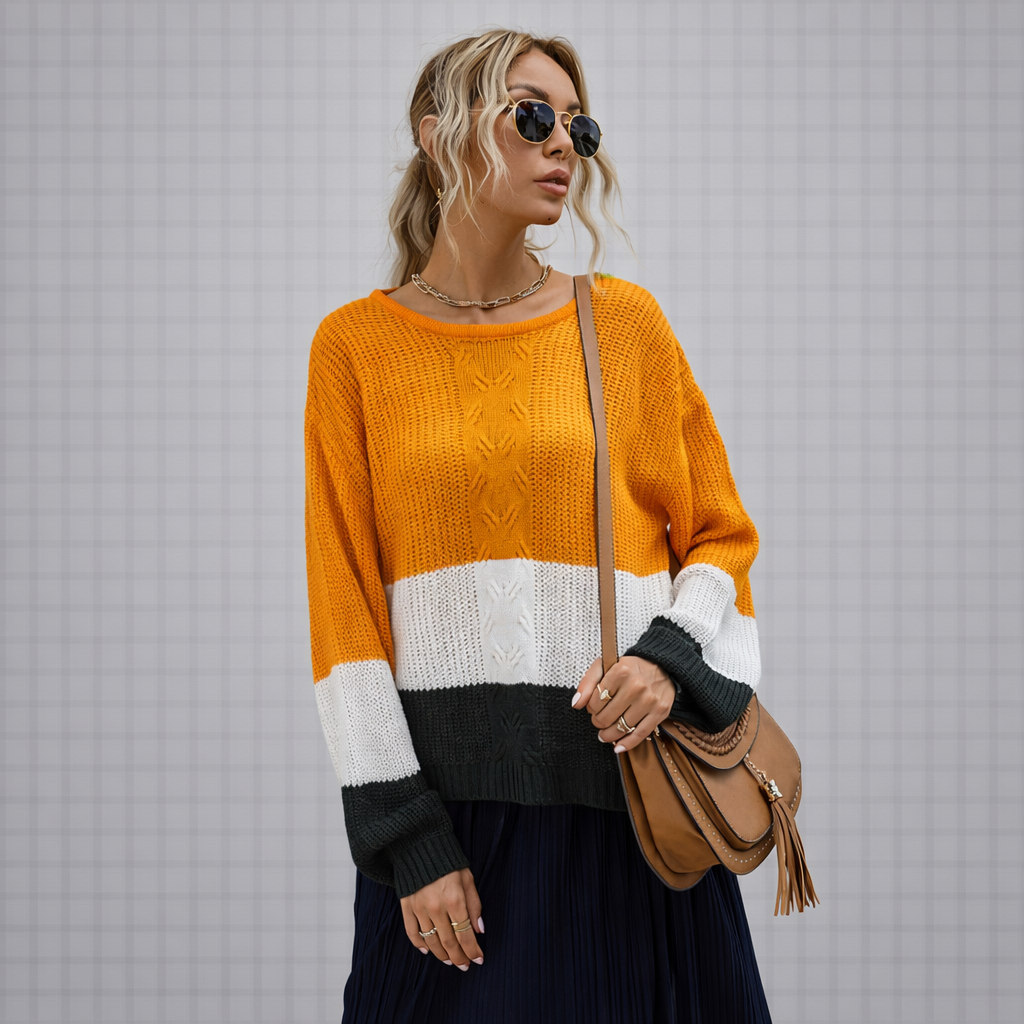Long sleeve pullover sweater designed for relaxed comfort and everyday wear.