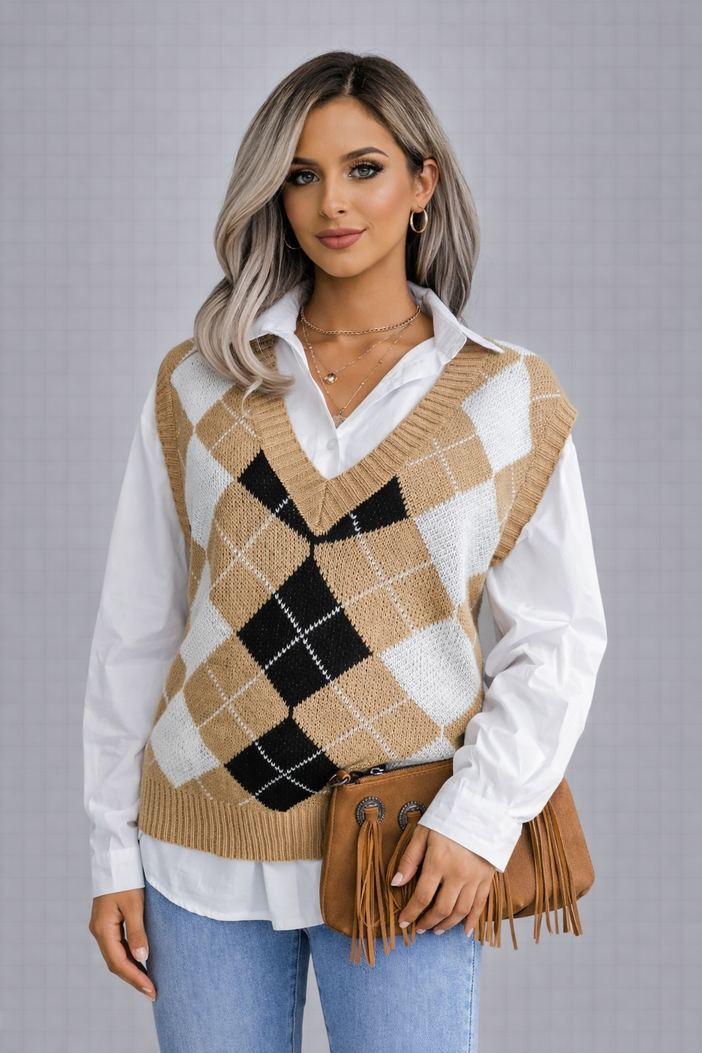 Be the first to review “Argyle Knit V-Neck Vest”